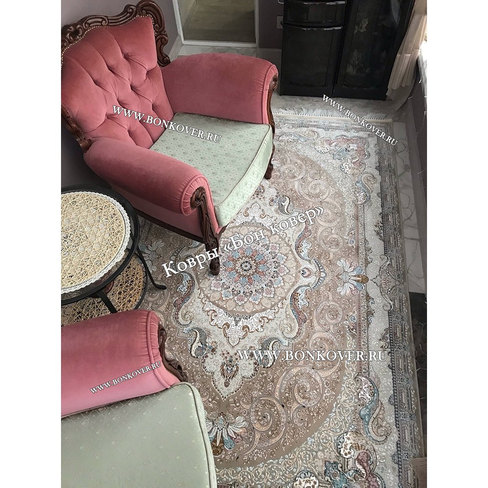 Красивый Иранский Ковер Для Гостиной Арт 30281 наполняет интерьер квартиры теплом и уютом, гармонично сочетает в себе изящество и красоту. Он создан из современных материалов, прочный и долговечный.