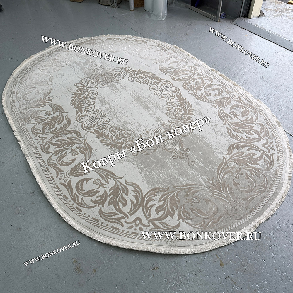 Ковер Турция Для Гостиной Дизайн 95 Белый с Бежевым станет великолепным преображением жилого помещения, подчеркивая высокий статус семьи владельца.
